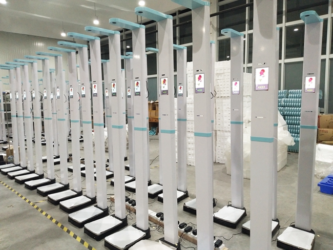 在上禾科技總部廠房中,一臺(tái)臺(tái)智能身高體重測(cè)量設(shè)備整裝待發(fā),在發(fā)給客戶之前,還有一道必不可少的環(huán)節(jié),那就是對(duì)設(shè)備的檢測(cè)和校準(zhǔn)。專業(yè)人員借助校準(zhǔn)專用工具,一絲不茍地進(jìn)行著檢測(cè)工作,只為保證發(fā)給為客戶的設(shè)備就是最好的。